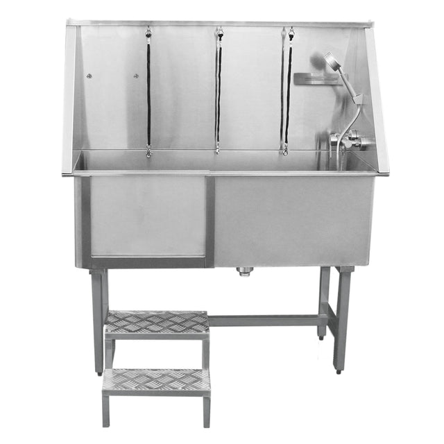 Prenez soin de vos chiens avec ce superbe bain en acier inoxydable, conçu pour les toiletteurs d'animaux très occupés.