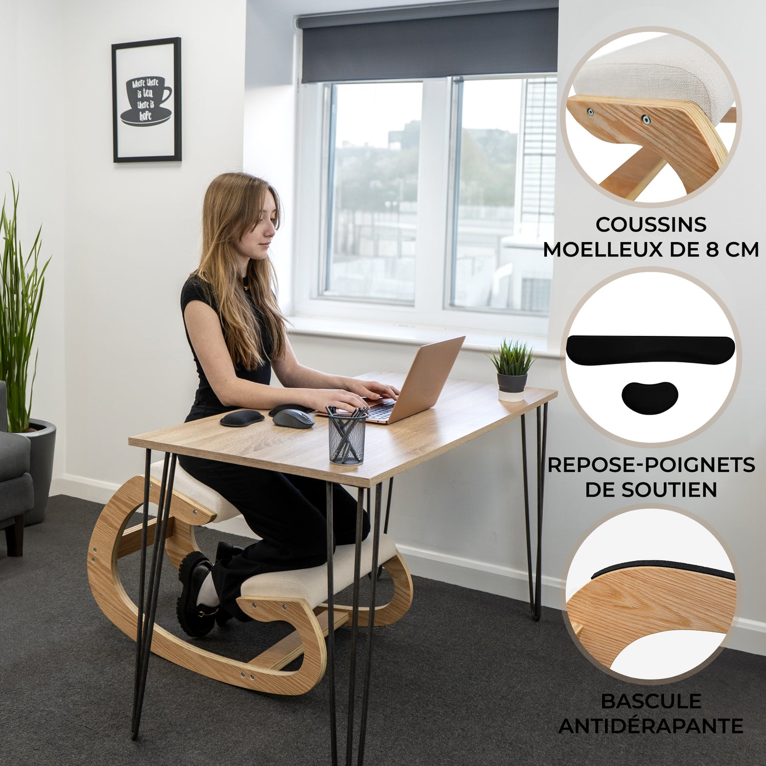 Améliorez votre espace de travail avec notre chaise ergonomique à genoux – l’alliance parfaite de confort, de style et de bien-être.