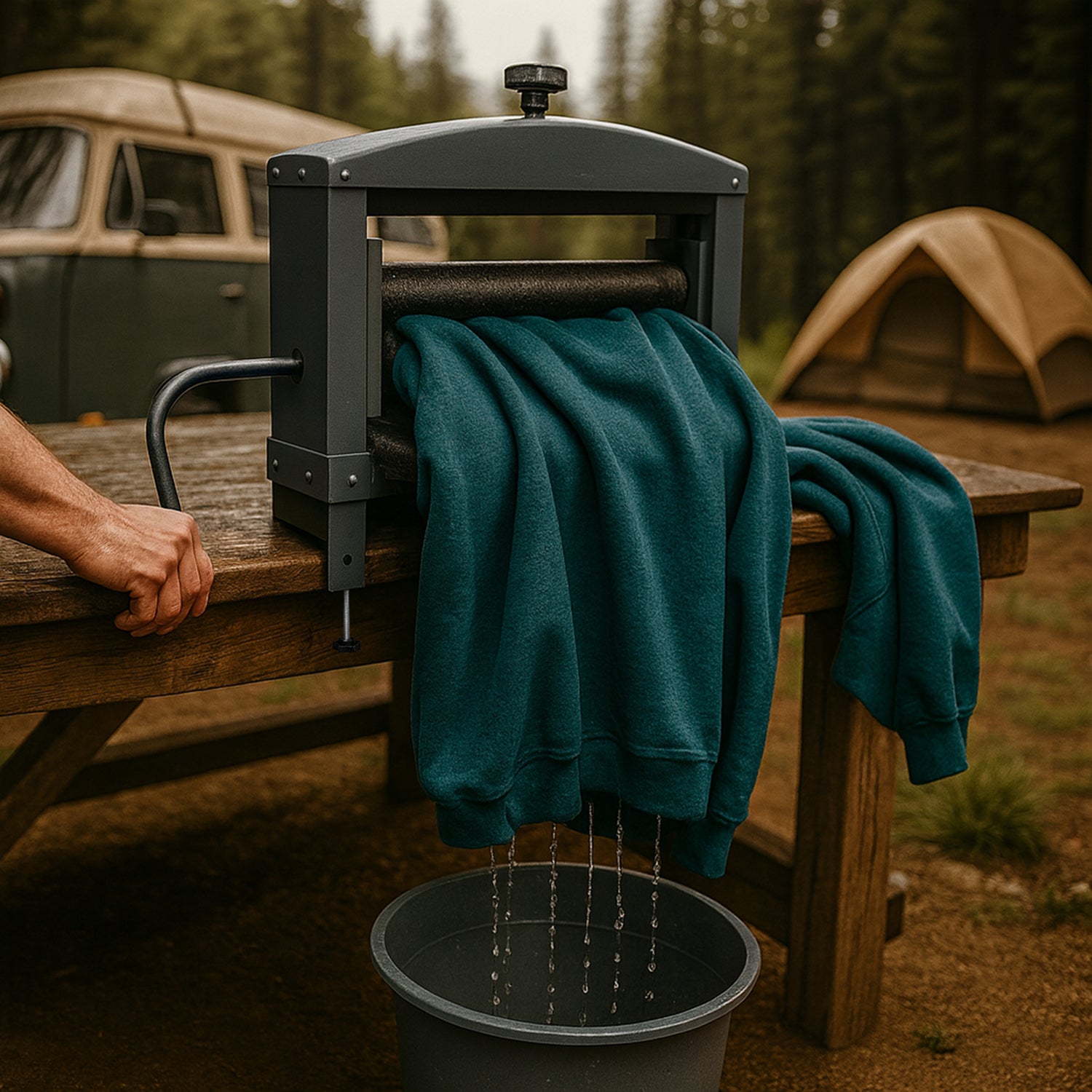 Vous travaillez dans un garage ? Vous vivez hors réseau ? Vous gagnez votre vie en faisant la vaisselle ? Quelle que soit votre situation en matière de lessive, cet essoreur à main vous sera utile !