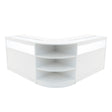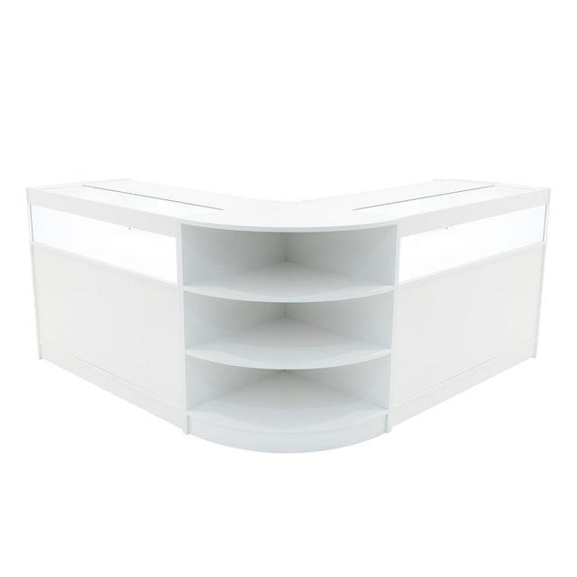Le comptoir d’angle incurvé LM60 ajoute fonctionnalité et fluidité à l’agencement de votre boutique. Son design compact et incurvé s’intègre parfaitement dans les coins ou se connecte harmonieusement à des comptoirs linéaires pour former un ensemble cohérent. Le LM60 est doté de trois étagères d’exposition ouvertes orientées vers le client, maximisant ainsi la visibilité et l’accessibilité des produits – idéal pour exploiter efficacement les espaces d’angle.