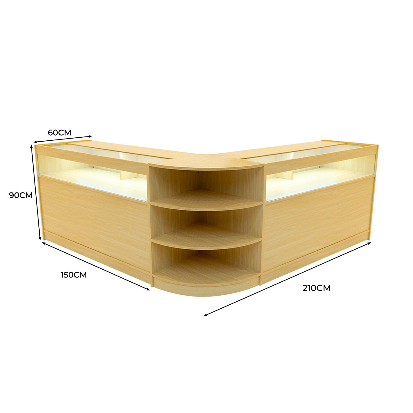 Fabriqués en MDF de haute qualité avec une finition érable en mélamine durable, les comptoirs B1500 et LM60 garantissent une performance durable et une esthétique contemporaine uniforme. Cette finition partagée crée une cohérence visuelle dans l’ensemble de votre aménagement, tandis que les éléments en verre trempé du B1500 apportent une touche de raffinement aux zones de présentation.