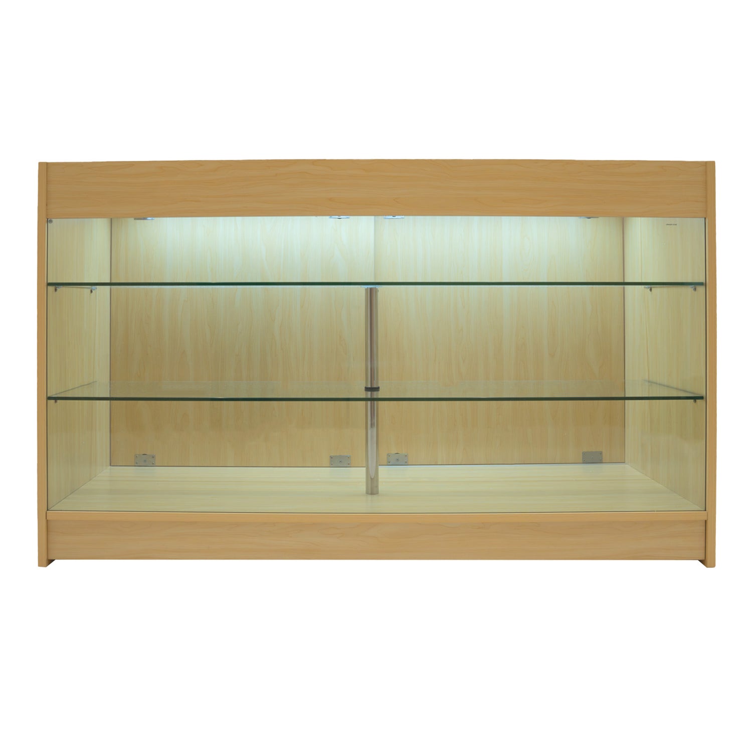 L’ensemble des comptoirs est fabriqué en MDF de haute qualité avec une finition mélaminée érable durable, assurant longévité, cohérence esthétique et robustesse. Les éléments en verre trempé du K1500 ajoutent une touche raffinée aux zones de présentation.