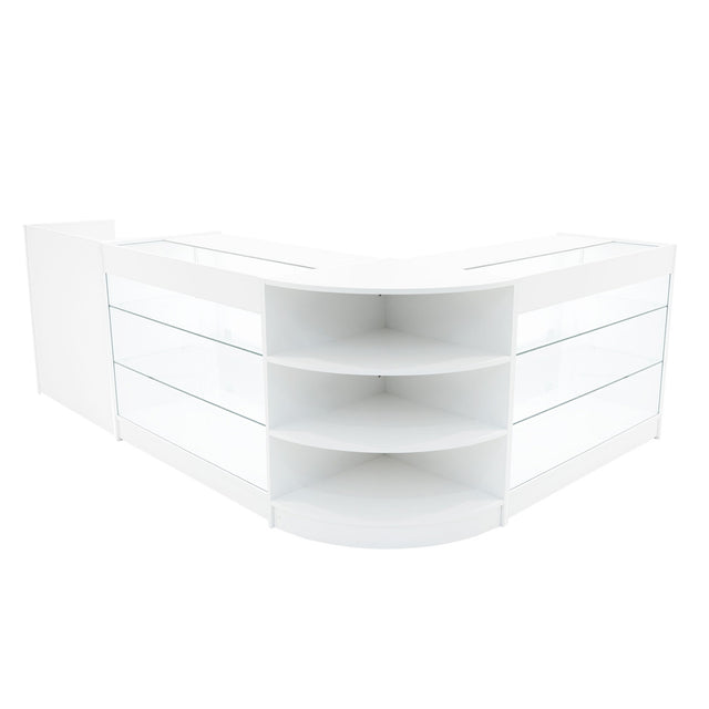 Tous les comptoirs sont fabriqués en MDF de haute qualité, avec un revêtement en mélamine blanc durable, assurant performance, longévité et esthétique contemporaine. Ce matériel commun et cette finition uniforme offrent une harmonie visuelle à votre agencement, tandis que les éléments en verre trempé du K1200 ajoutent une touche élégante aux zones d’exposition.