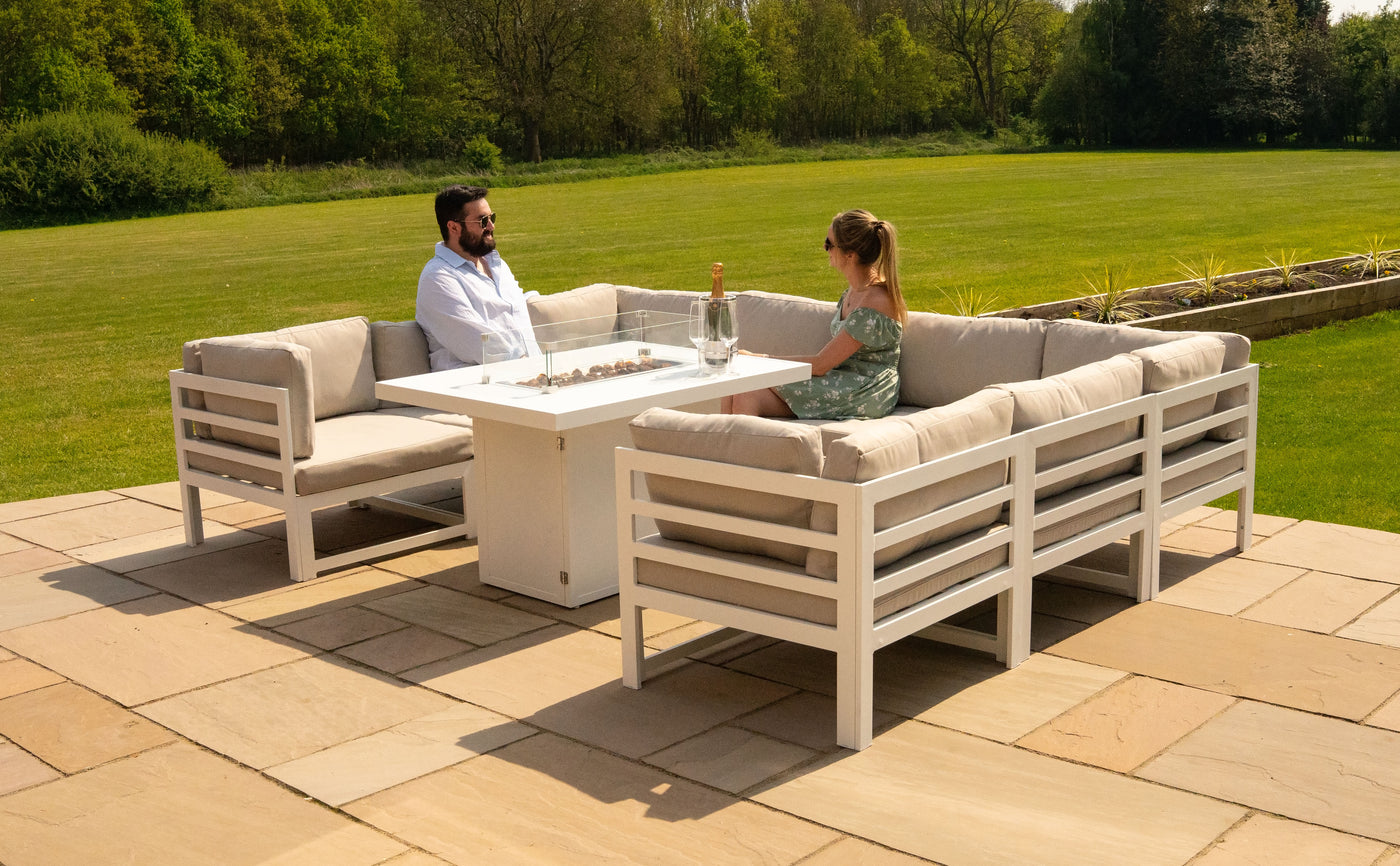 Salon de Jardin en Aluminium 8 Personnes & Table Foyer au Gaz - Blanc