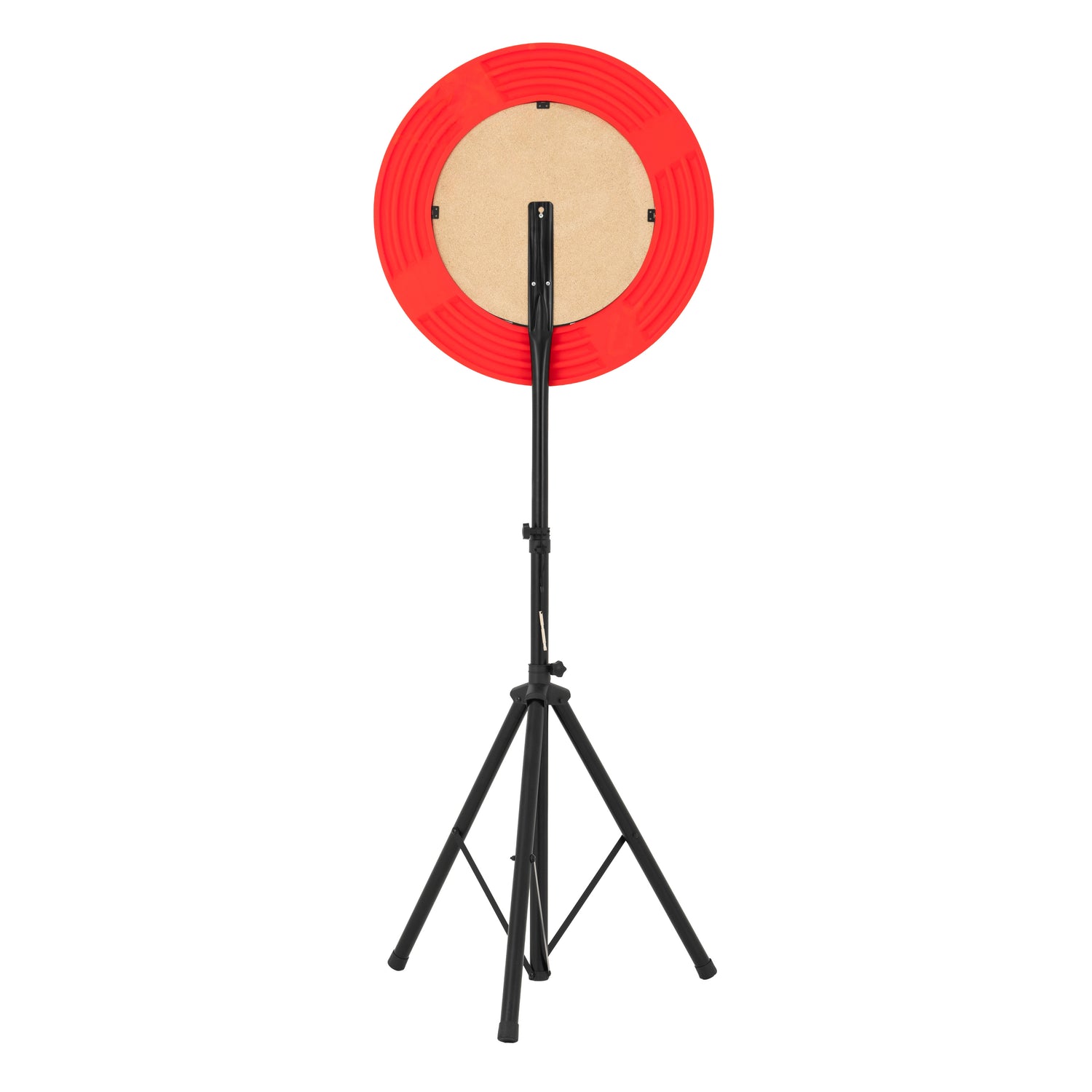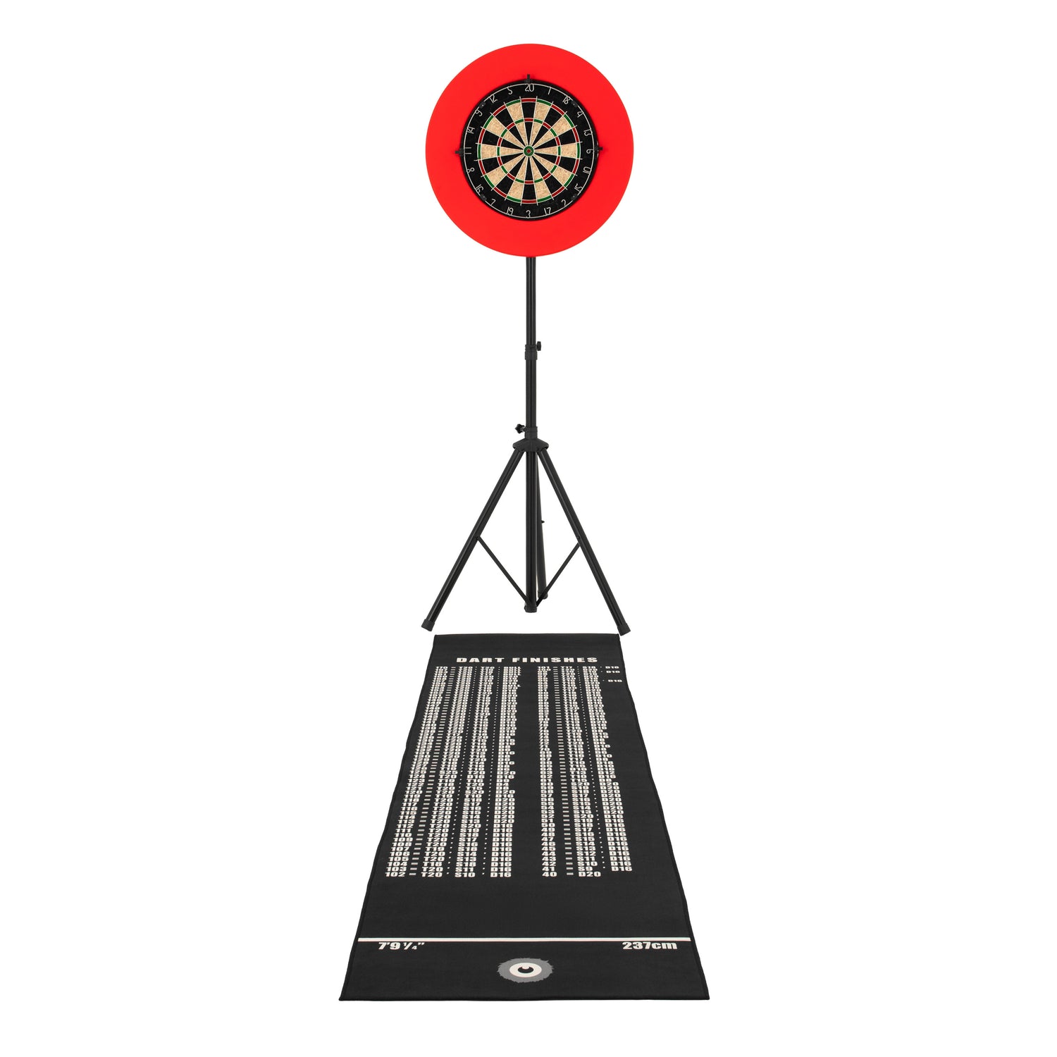 L’ensemble inclut une cible de style tournoi, solidement fixée sur un trépied réglable permettant d’ajuster la hauteur du centre entre 120 cm et la hauteur réglementaire de 185 cm. La base du trépied offre une excellente stabilité sur différents types de surfaces, ce qui en fait un choix idéal aussi bien pour une utilisation en intérieur qu’en extérieur, ou pour un déplacement facile. Installez-la librement où cela vous convient, ou fixez-la au mur si vous préférez.