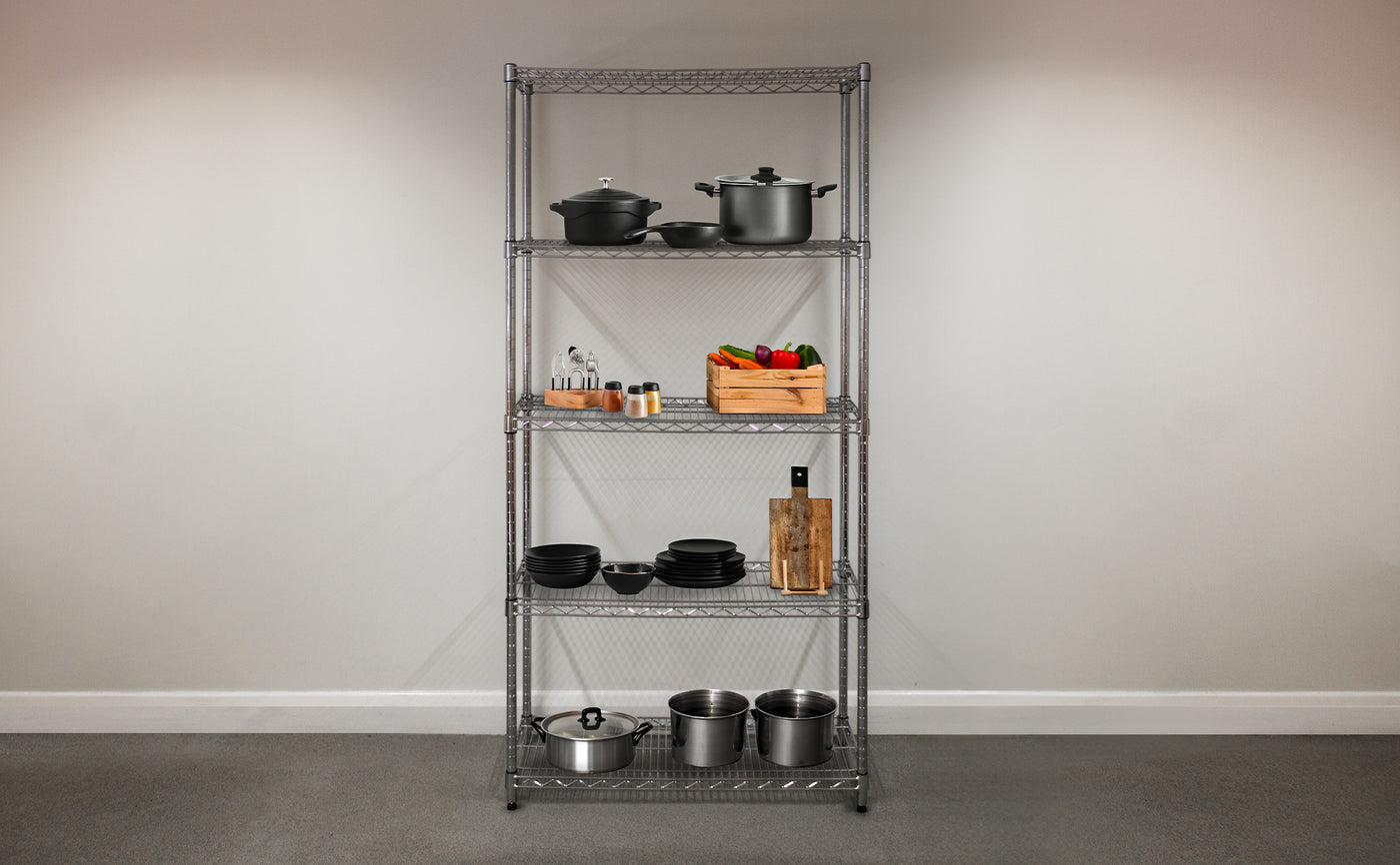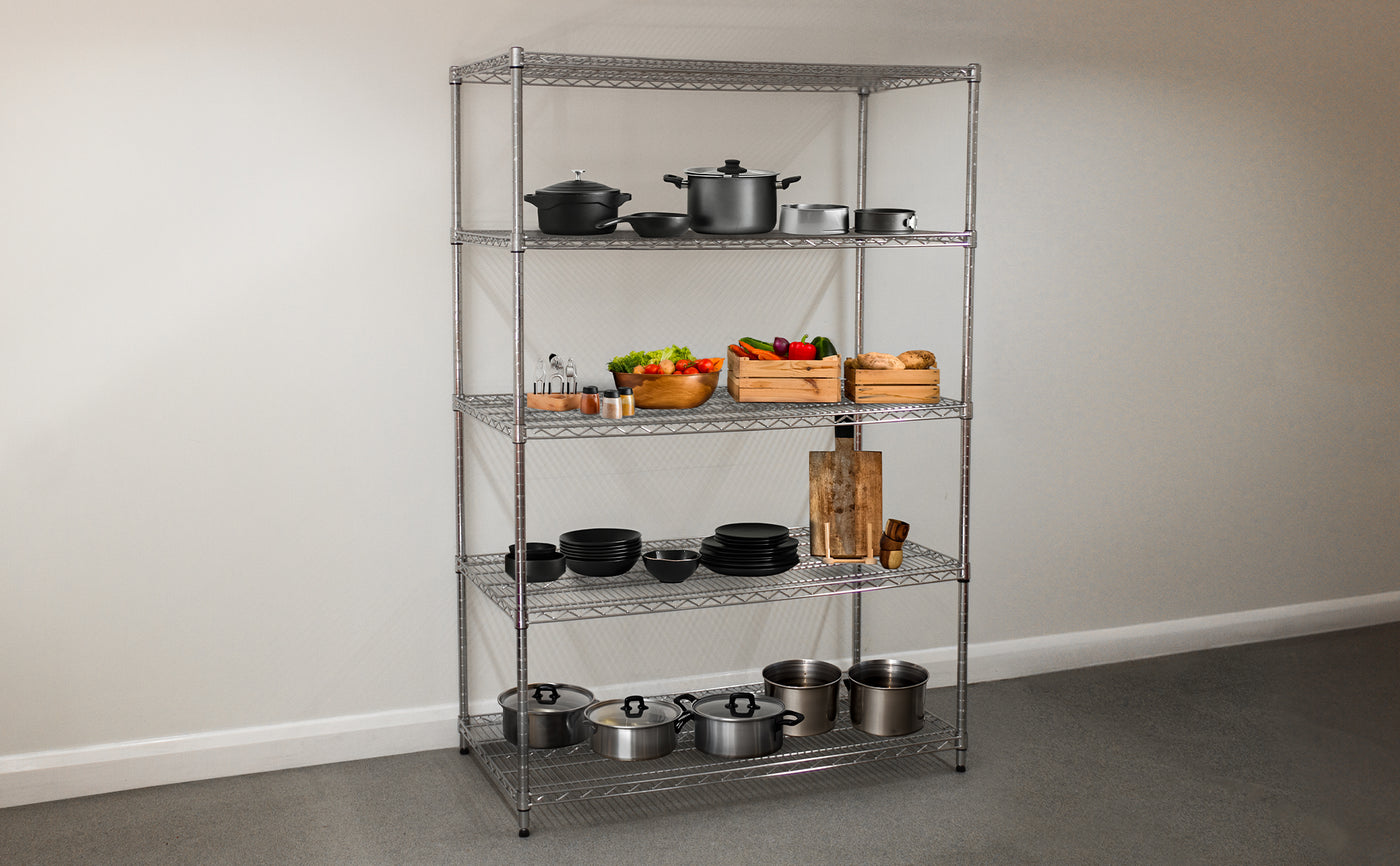 Avec son énorme capacité de poids, sa structure durable et sa conception fonctionnelle globale, cette étagère en fil d’acier à 5 niveaux est la nouvelle solution parfaite pour vos besoins de stockage.