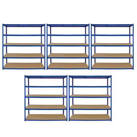 Monster Racking - 5 Rayonnages T-Rax en Acier Bleu 160cm x 60cm x 180cm