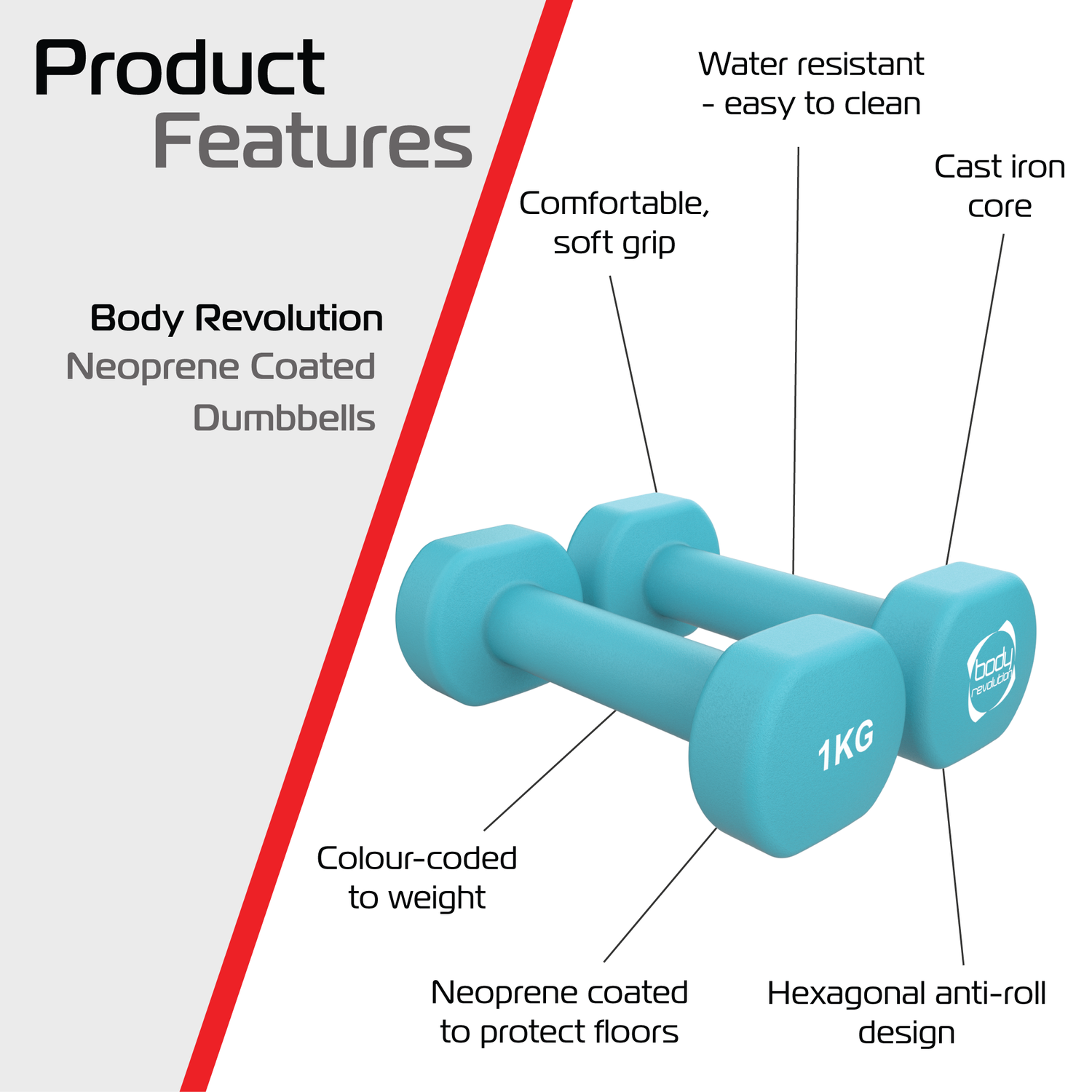 Adaptés à un usage à domicile, en extérieur ou en salle de sport professionnelle, ces haltères en néoprène allient praticité, durabilité et performance. Ils incarnent la mission de Body Revolution : rendre l’équipement de musculation de haute qualité accessible à tous, pour vous accompagner de vos premiers pas jusqu’à vos réussites fitness. Compacts, fiables et faciles à utiliser, ils sont indispensables pour quiconque souhaite dynamiser ses séances avec une résistance légère.