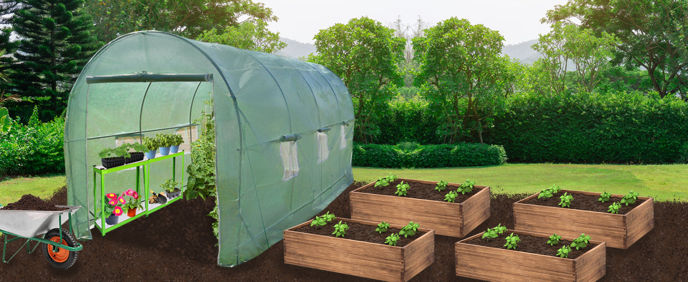Debout à 6 m de haut et 3 m de long, cette serre polytunnel est le grand environnement clos idéal pour créer un paradis végétal.
