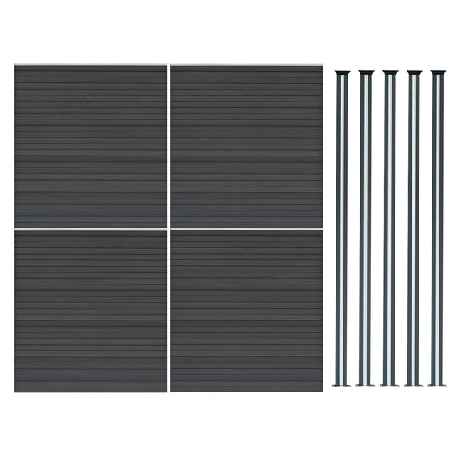Kit Clôture Composite 4 Panneaux & 5 Poteaux à LED - Gris