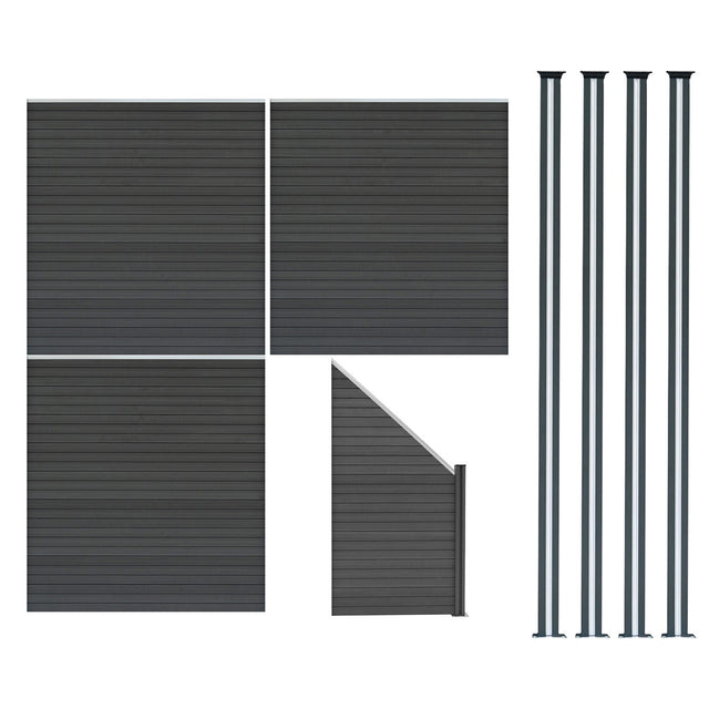 Kit Clôture Panneaux en Composite 3 Quadratique, 1 Incliné & 4 Poteaux à LED - Gris