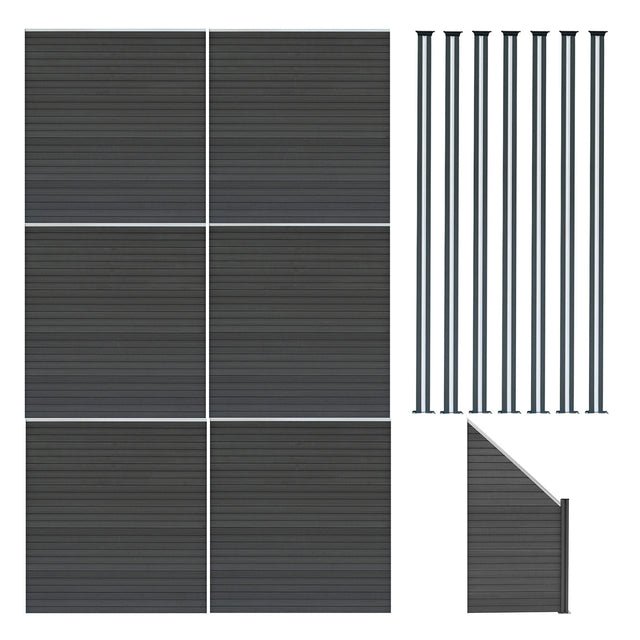 Kit Clôture Panneaux en Composite 6 Quadratique, 1 Incliné & 7 Poteaux à LED - Gris