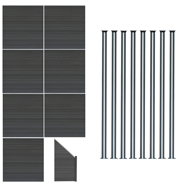 Kit Clôture Panneaux en Composite 7 Quadratique, 1 Incliné & 8 Poteaux à LED - Gris