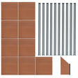 Kit Clôture Panneaux en Composite 9 Quadratique, 1 Incliné & 10 Poteaux à LED - Marron