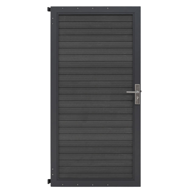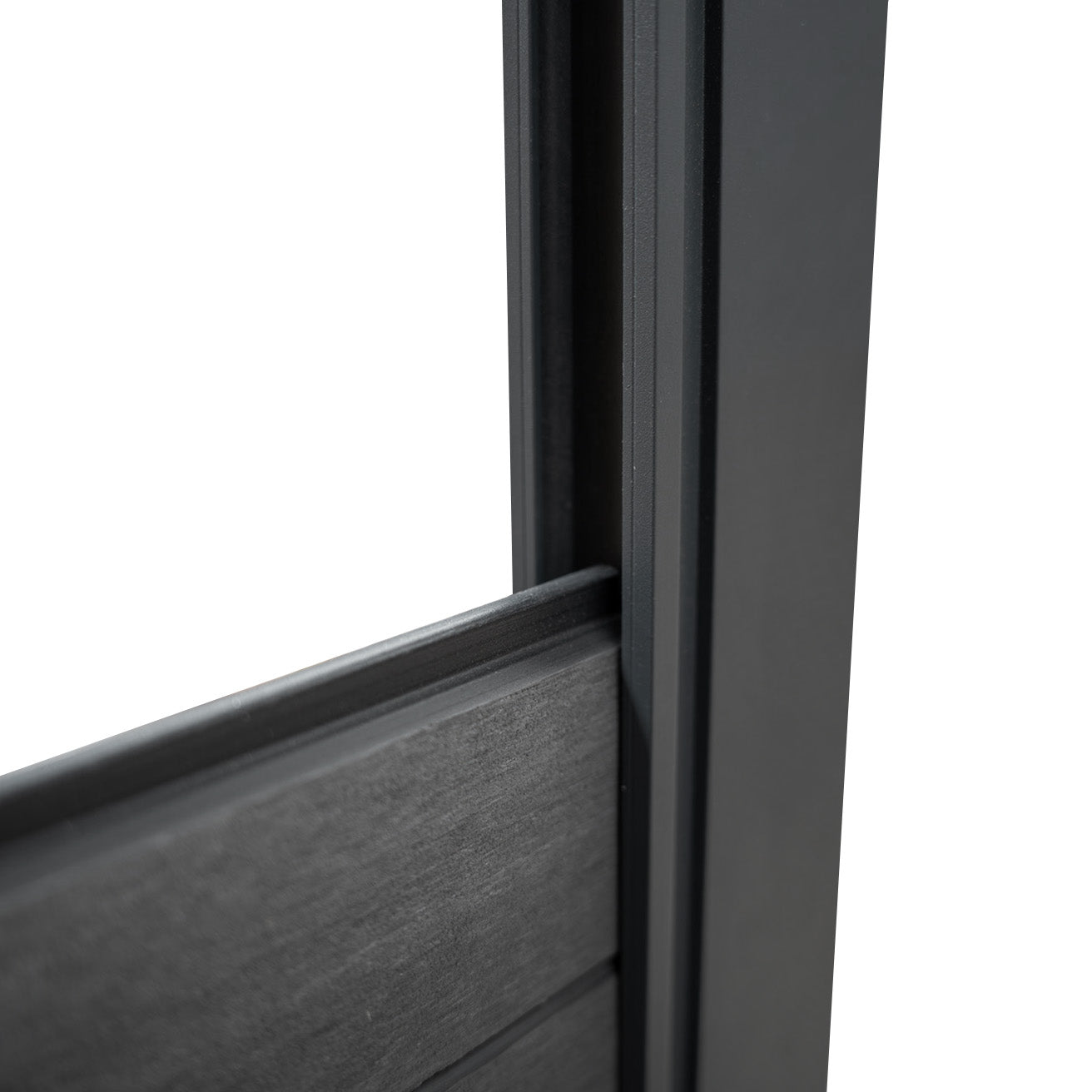 Conçu avec soin à partir de WPC (bois composite) de qualité supérieure et renforcé par un cadre en aluminium robuste, ce portillon allie attrait esthétique et solidité structurelle. Il est composé de neuf lattes emboîtables formant un panneau unique, solide et fiable, qui conserve sa forme et son apparence au fil du temps. Le cadre en aluminium, en plus d’apporter de la rigidité, est doté d’un système de fixation polyvalent permettant une installation aisée sur divers poteaux ou structures existantes grâce à des points de fixation pré-percés.
