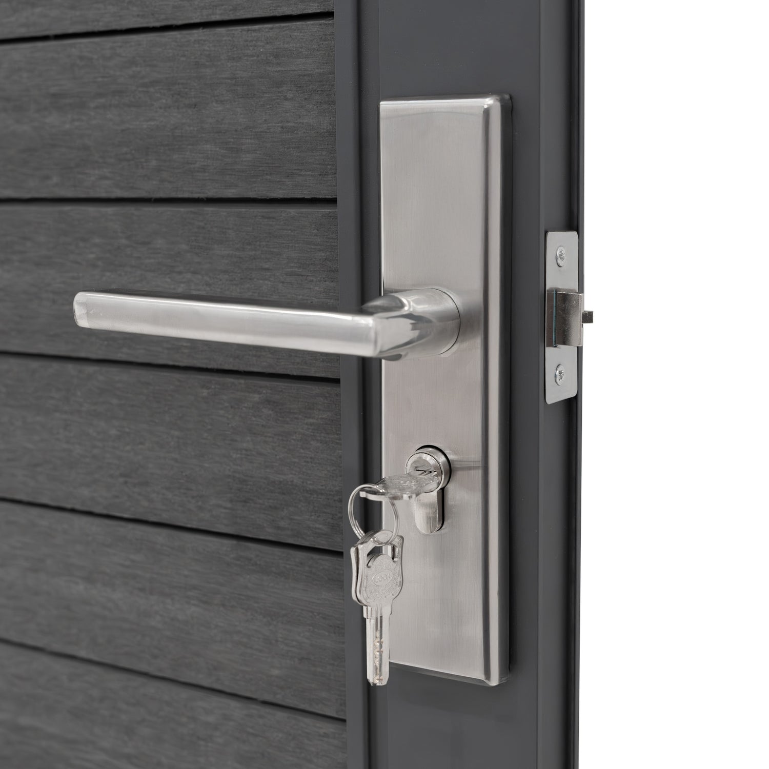 Un élément clé de ce portillon est son système intégré de poignée et de serrure, conçu à la fois pour la facilité d’utilisation et la tranquillité d’esprit. La poignée, au design épuré et ergonomique, complète l’esthétique moderne du portillon tout en offrant une prise en main confortable. La serrure intégrée assure une sécurité fiable et est fournie avec trois clés, vous offrant commodité et possibilité de partager l’accès avec des membres de la famille ou des visiteurs de confiance. Ce système de verrouillage est idéal pour renforcer la sécurité de votre propriété sans sacrifier le style.