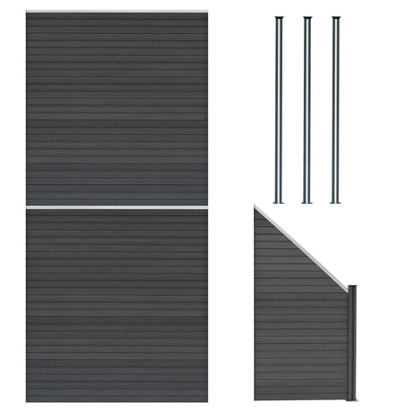Kit Clôture Panneaux en Composite 8 Quadratique, 1 Incliné & 9 Poteaux à LED - Gris