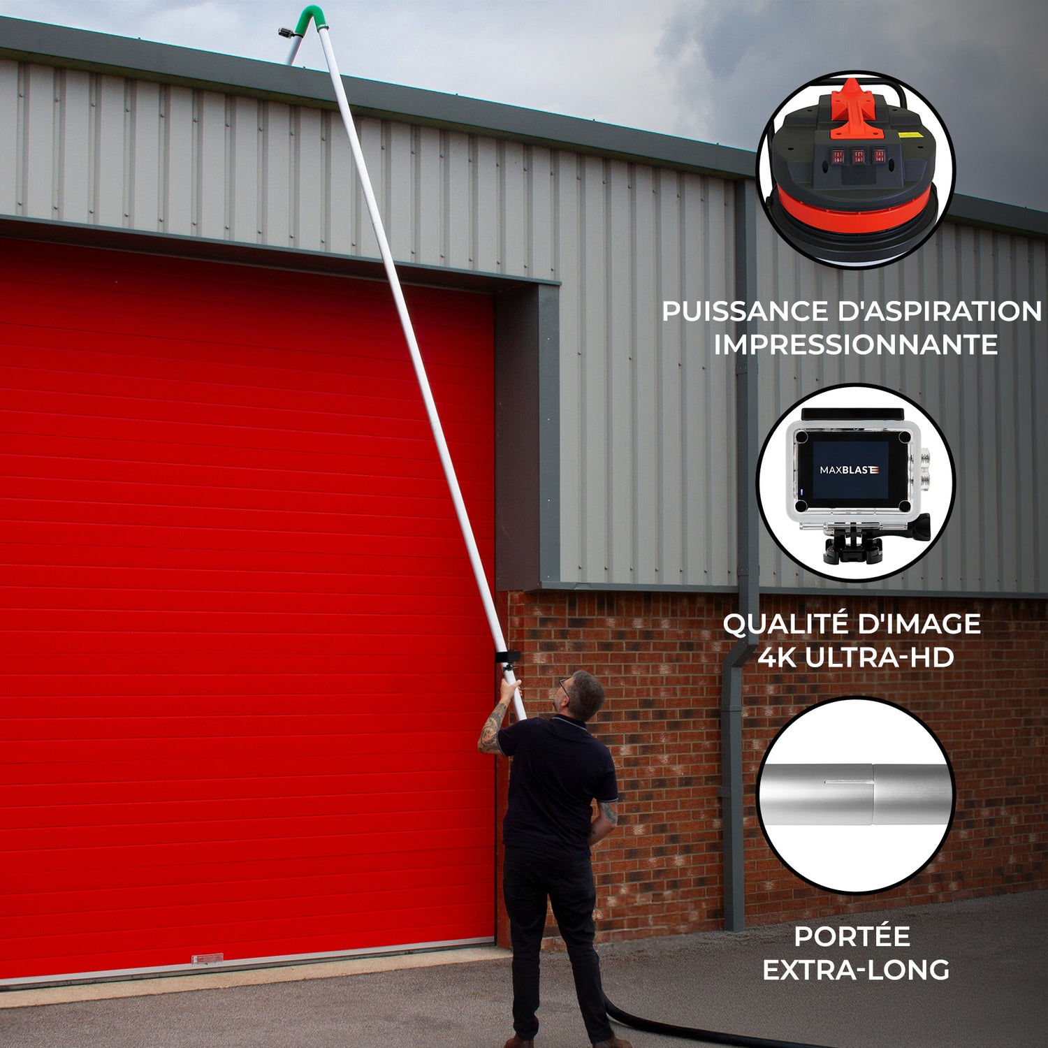Avec des performances de niveau professionnel et un contrôle optimal, cet ensemble aspirateur eau et poussières, kit de perches et caméra redéfinit le nettoyage des gouttières, permettant d’obtenir des résultats de haute qualité rapidement, efficacement et en toute sécurité depuis le sol.