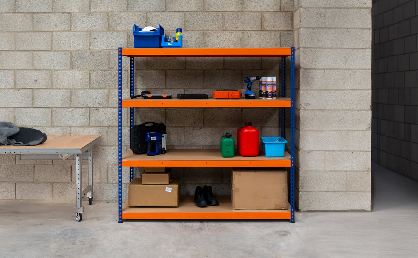 Monster Racking - 1 Rayonnage S-Rax à 4 Étagères en Acier Orange et Bleu 60cm x 180 cm x 180 cm