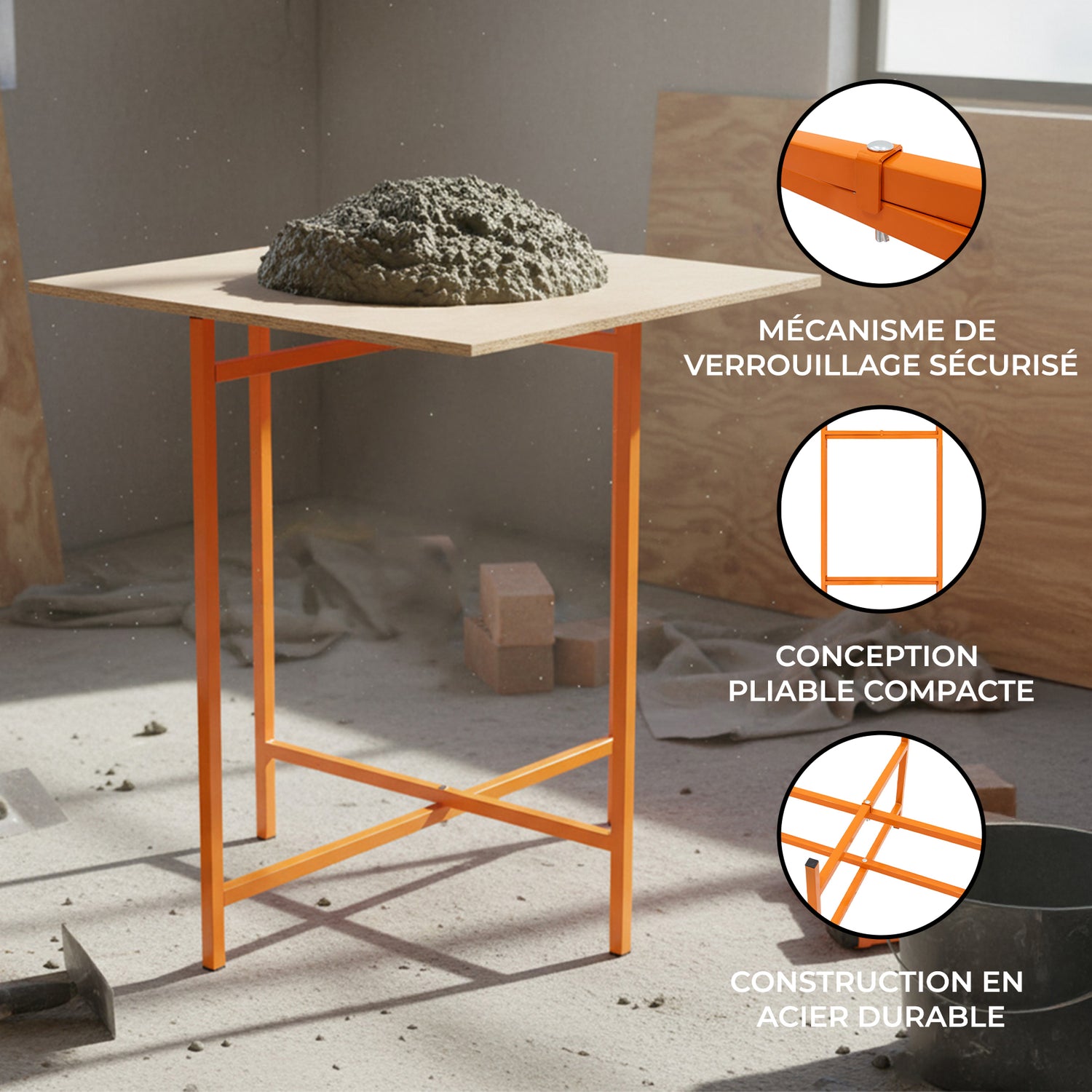 Pensés pour maintenir fermement une planche de mortier à une hauteur de travail idéale, ils gardent le mortier à portée de main, optimisant ainsi la productivité et réduisant la fatigue physique tout au long de la journée. Que vous construisiez des murs ou appliquiez un enduit, ces supports robustes contribuent à maintenir un espace de travail plus propre et plus efficace.
