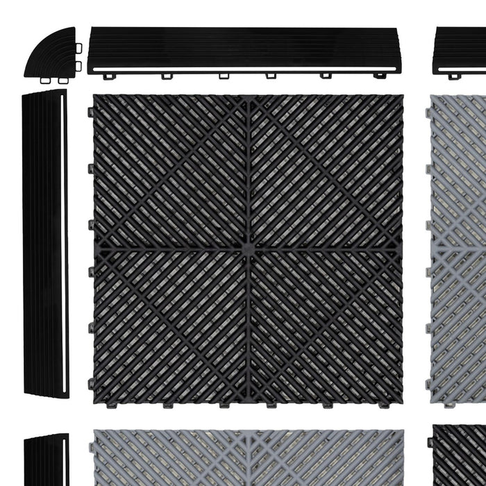 Carrelage de Sol Ventilé Pour Garage Avec Bordure (90 x Noir & 30 Gris)